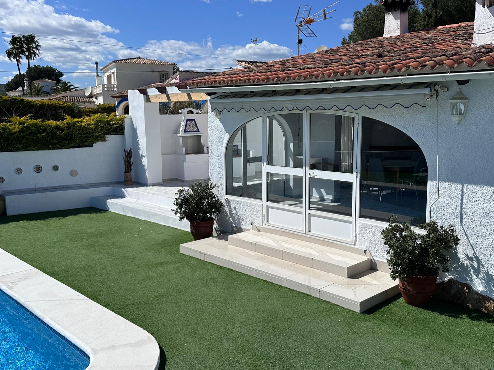 Cozy villa in Moraira, located in a quiet area and with pleasant views of the sea. With a plot of 800 m² and a constructed area of 180 m², this property offers comfort, spaciousness and excellent outdoor space to enjoy the Mediterranean climate.