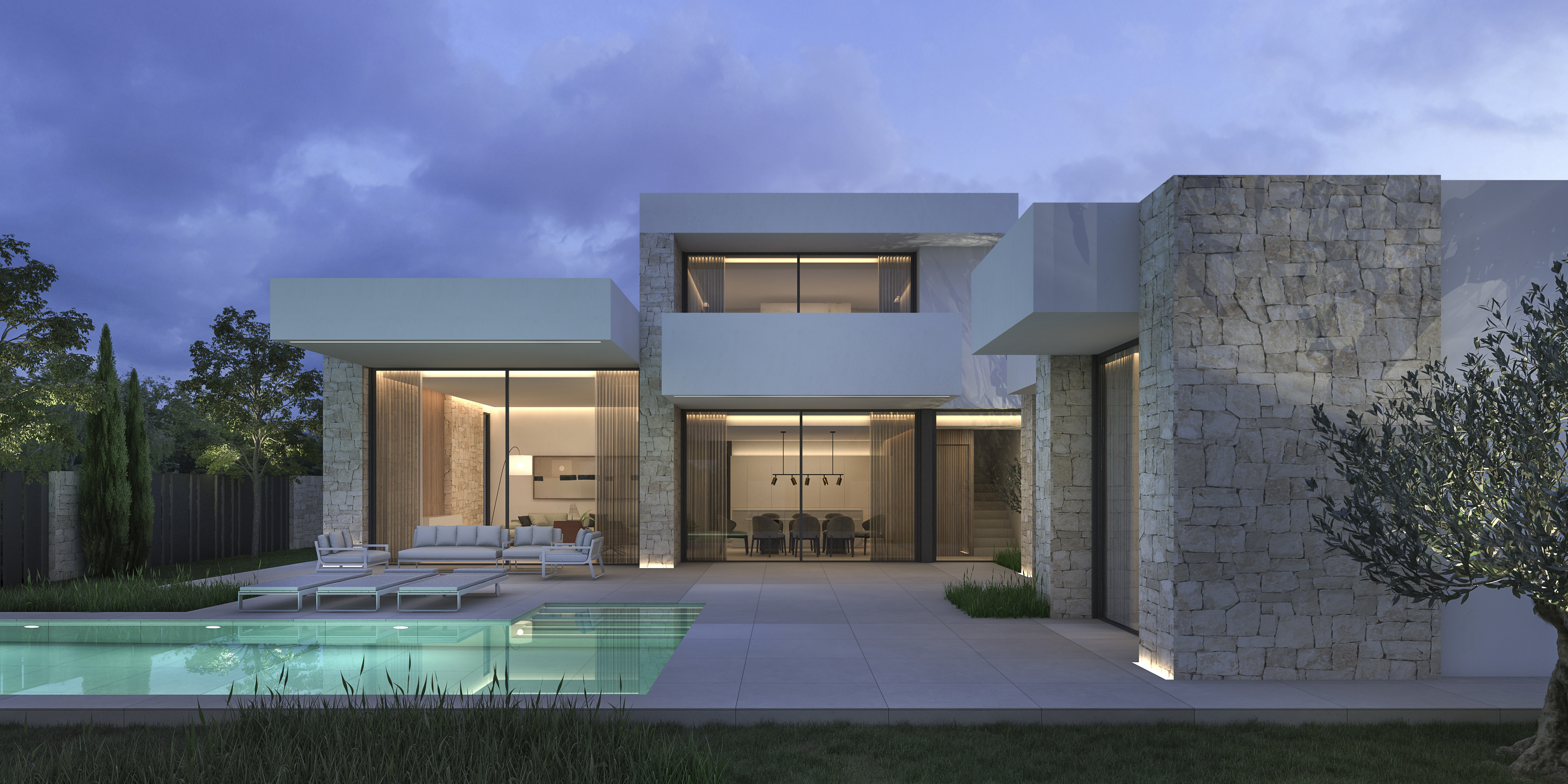 Exclusive modern design villa in Dénia, with 264 m2 of construction on a large plot of 705.65 m2. This impressive property combines elegance and comfort, highlighting its contemporary architecture with stone details and large windows that flood the spaces with light. The home has 3 spacious and bright suites offering comfort and privacy, as well as open rooms that fluidly connect the interior with the exterior.