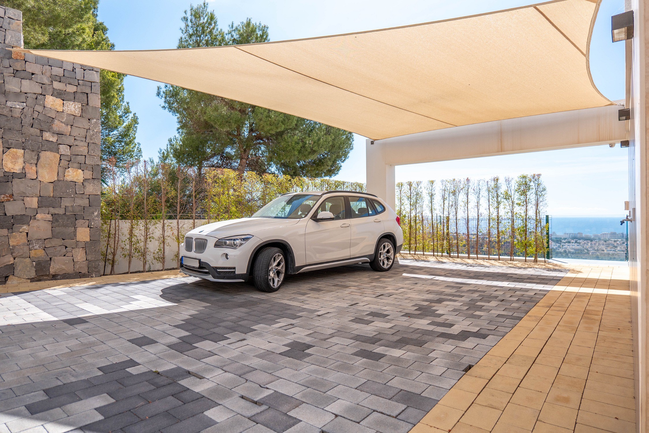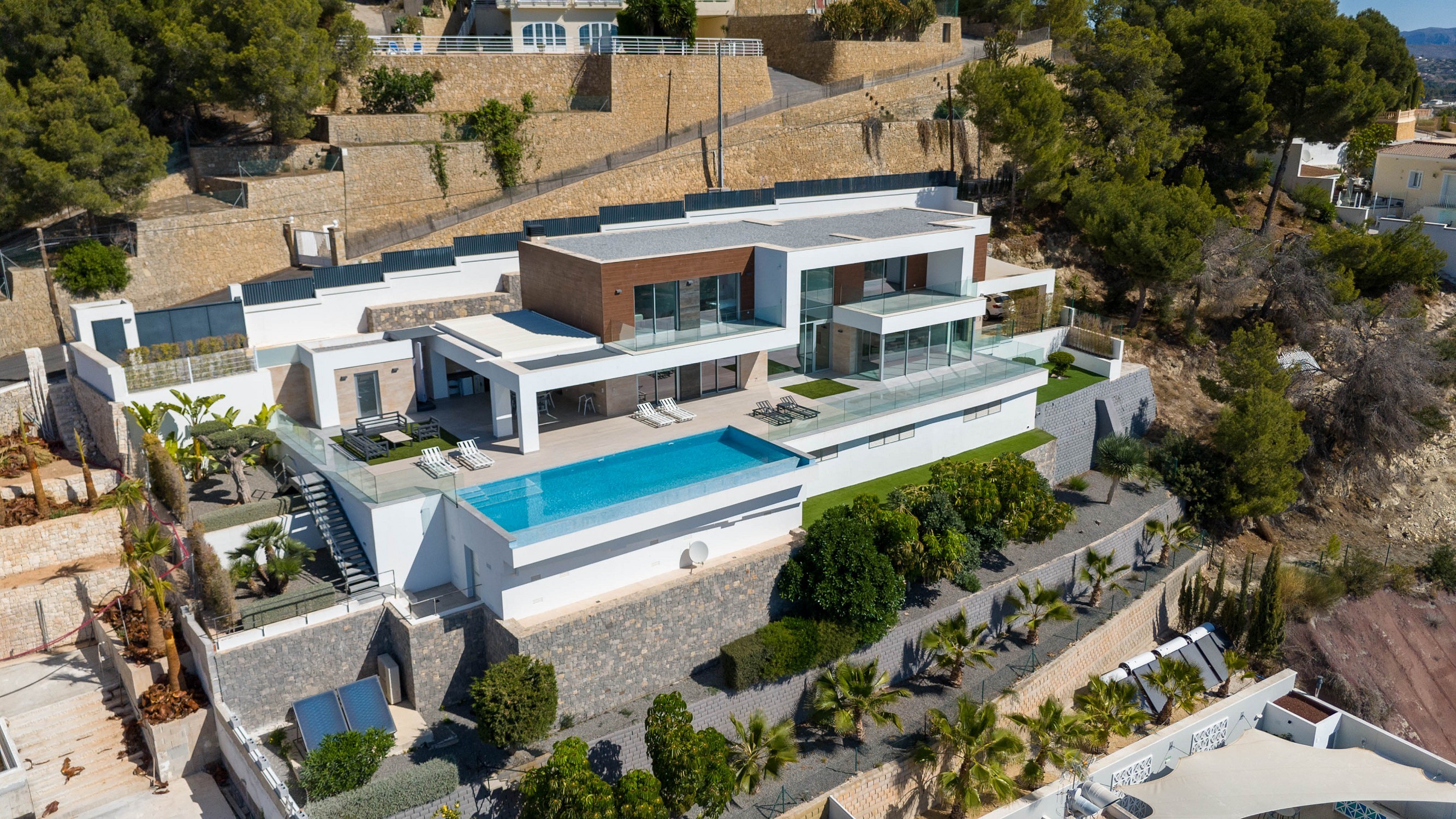 Located in La Colina del Sol, this modern 2019 villa blends natural stone and wood in an elegant, contemporary style.