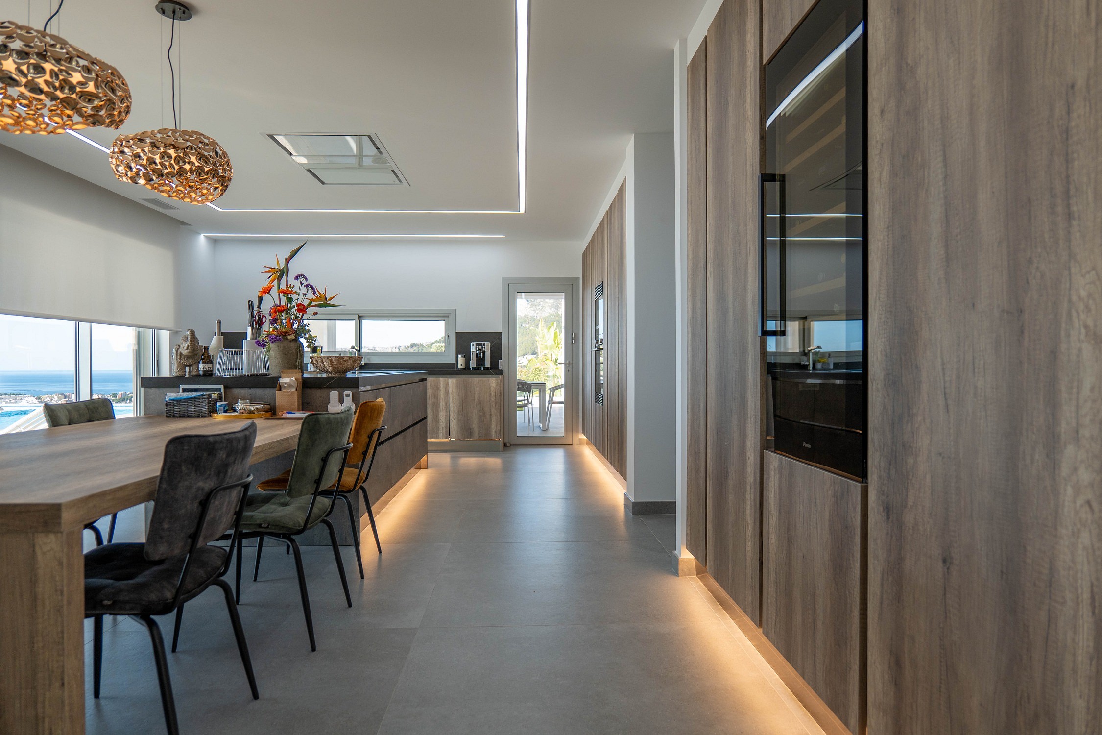 With panoramic sea views and the Peñón de Ifach, it features 4 bedrooms, 6 bathrooms, and sun-drenched terraces.