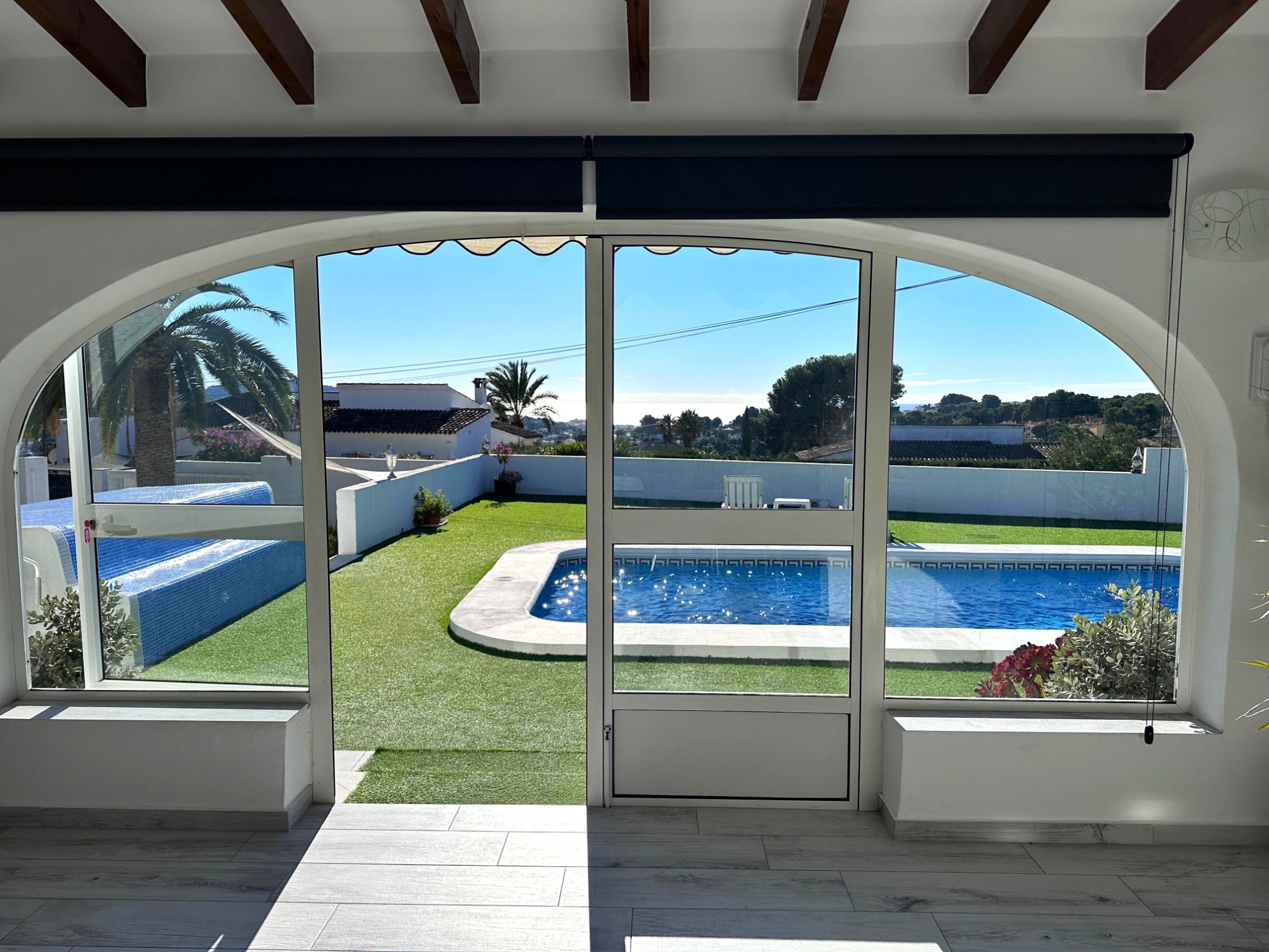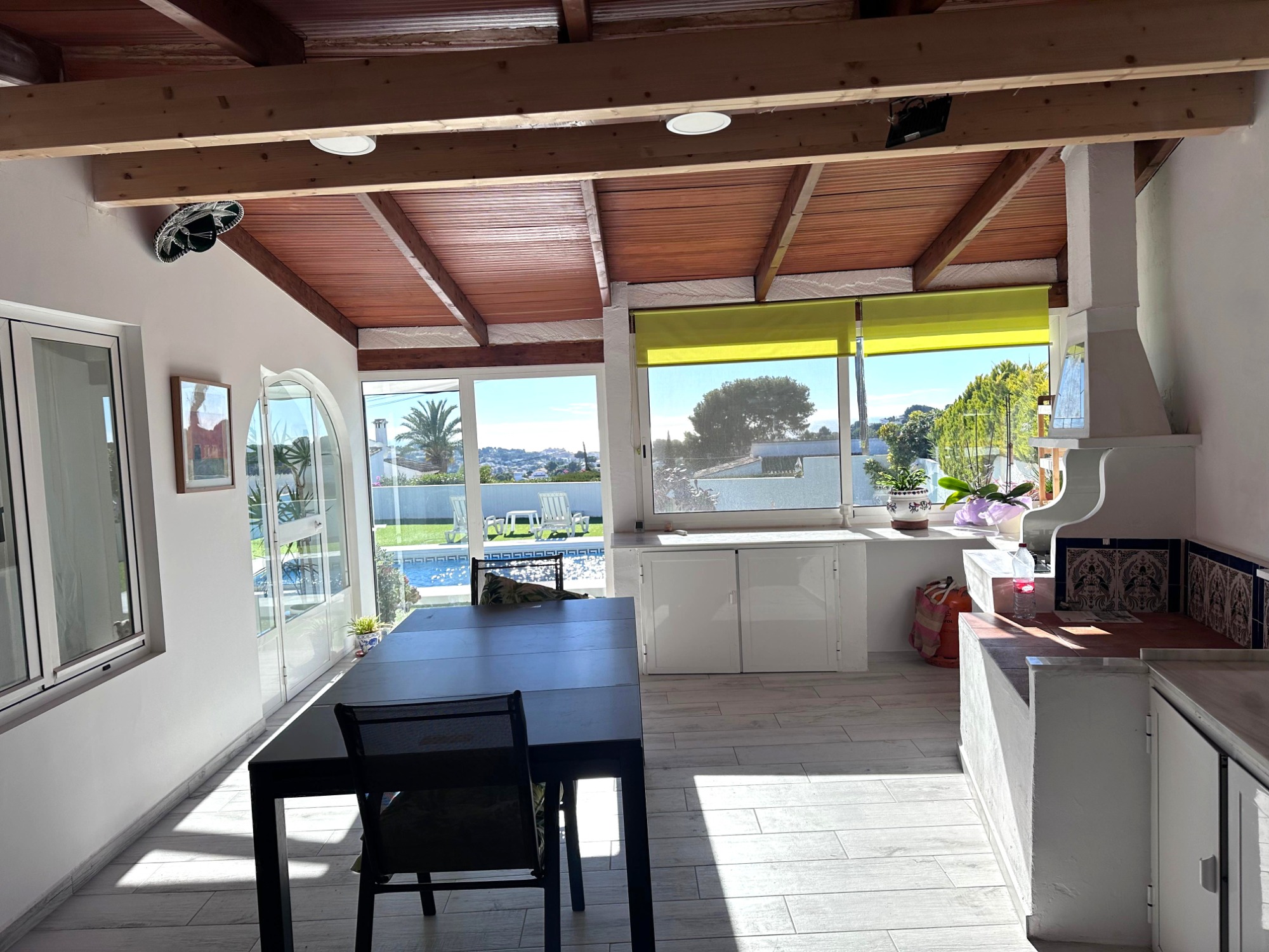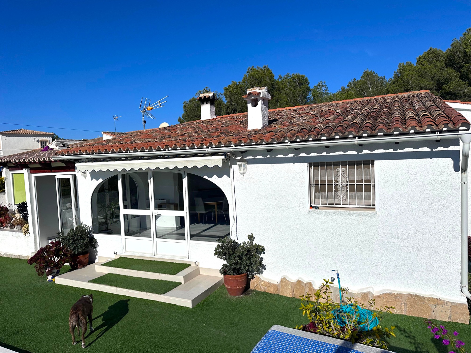 Villa confortable à Moraira, située dans un quartier calme et avec vue agréable sur la mer. Avec un terrain de 800 m² et une superficie construite de 180 m², cette propriété offre confort, espace et un excellent espace extérieur pour profiter du climat méditerranéen.