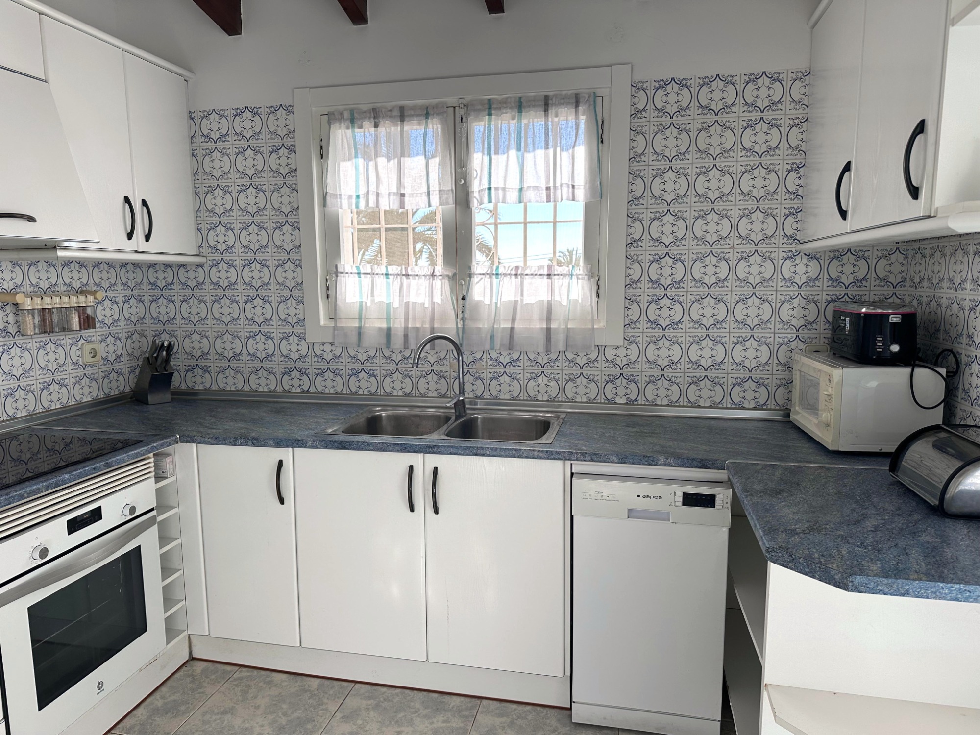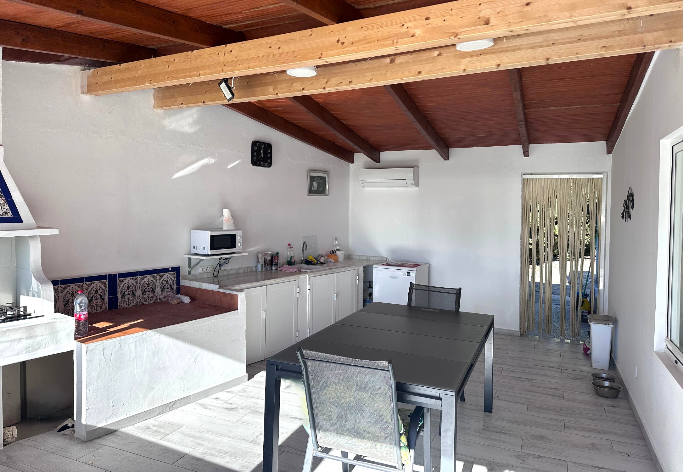 La maison est distribuée en trois chambres, une salle de bain avec douche, un toilettes, un salon-salle à manger et une cuisine séparée, ainsi qu'une buanderie pratique. À l'extérieur, un charmant porche et la terrasse de la piscine créent un environnement idéal pour se détendre ou partager des moments en plein air.