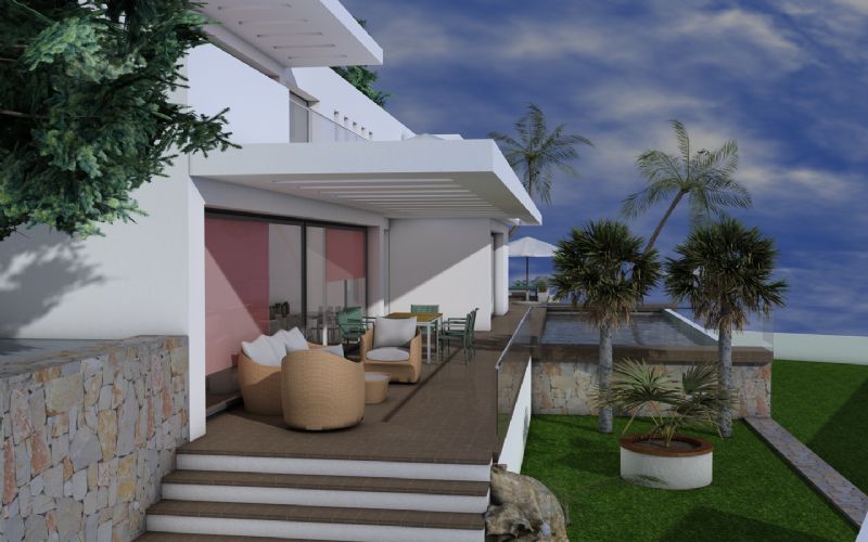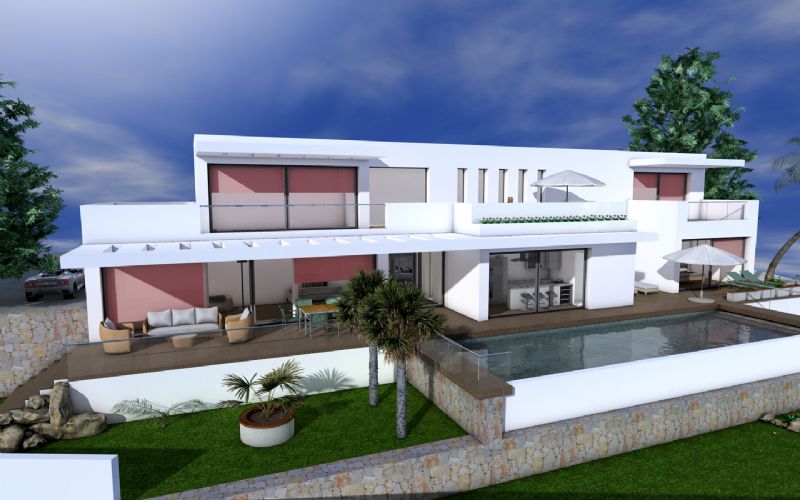 Villa neuve exclusive dans le lotissement El Bosque, à Moraira, sur un terrain de 836 m2. La maison offre 239 m2 habitables, répartis en 3 chambres et 3 salles de bains, avec un design moderne et des finitions haut de gamme.