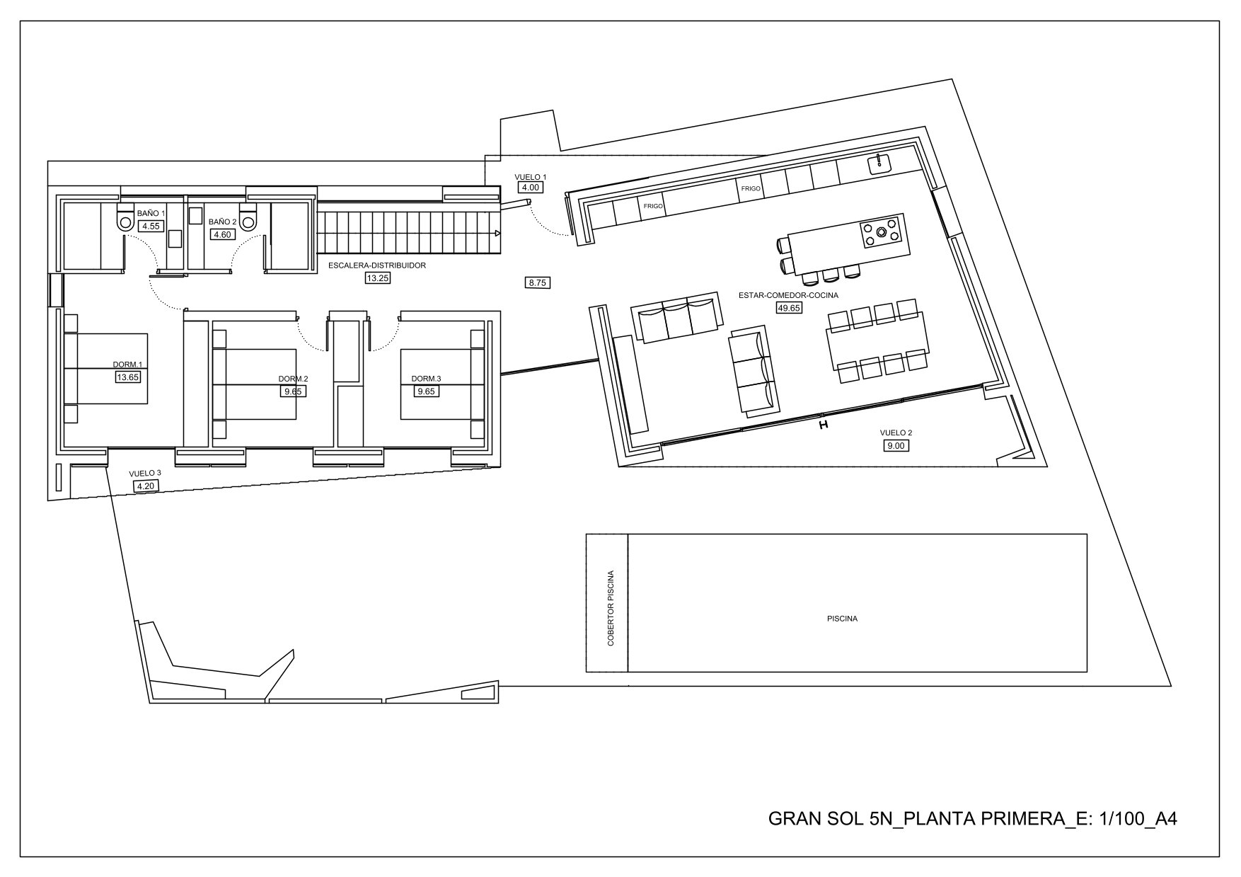 Villa moderne et exclusive sur la côte de Benissa-Calpe, à seulement 1,5 km de la plage de La Fustera. Construite avec des matériaux de luxe, elle s'étend sur deux étages :