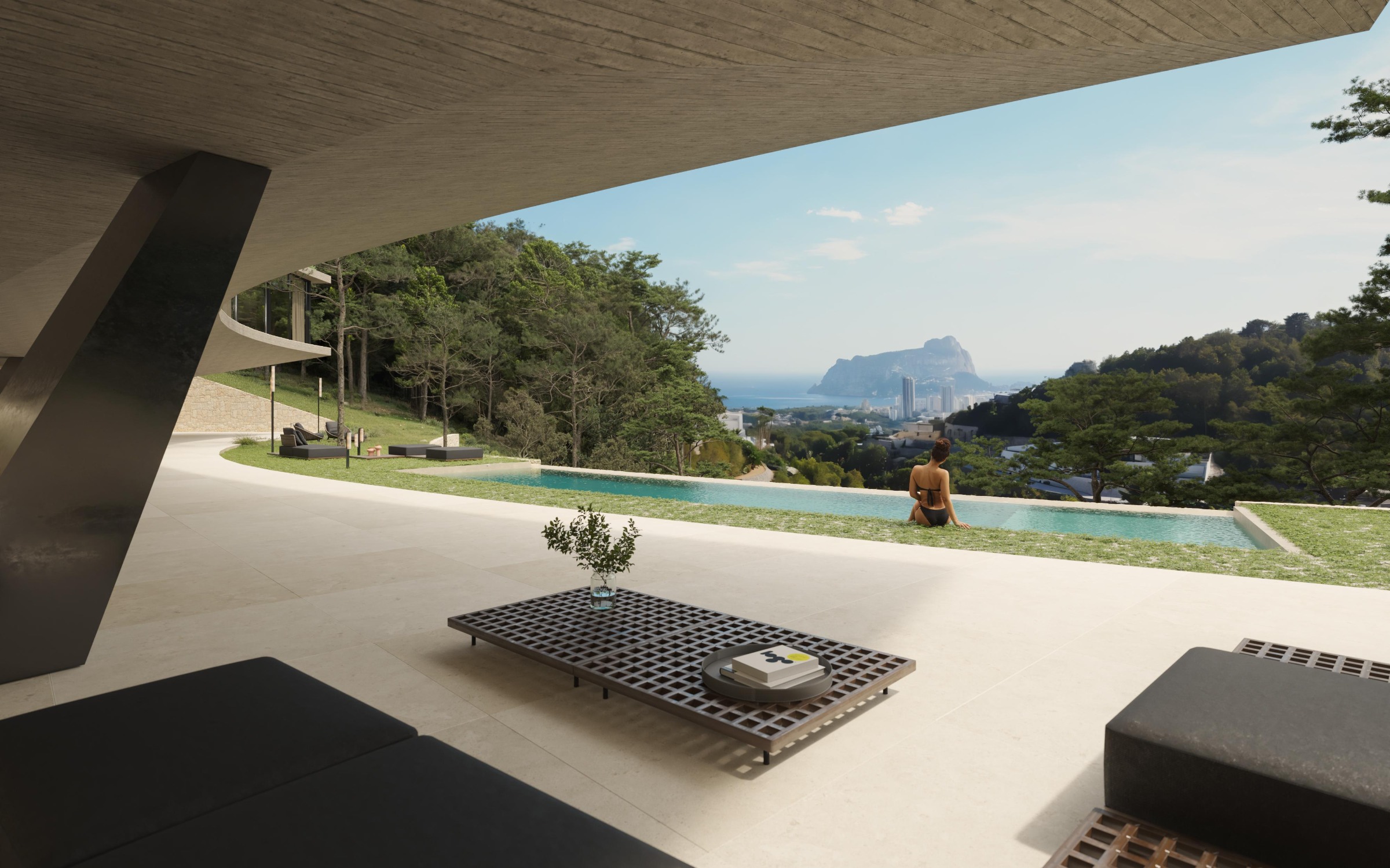 La propriété, au design unique et minimaliste, repose sur cinq ensembles de piliers qui lui confèrent une architecture exceptionnelle. De plain-pied, elle comprend quatre chambres en suite spacieuses, un salon-salle à manger lumineux et une suite parentale avec terrasse privée. De larges baies vitrées offrent des vues imprenables sur la mer Méditerranée et le Peñón de Ifach depuis toutes les pièces.