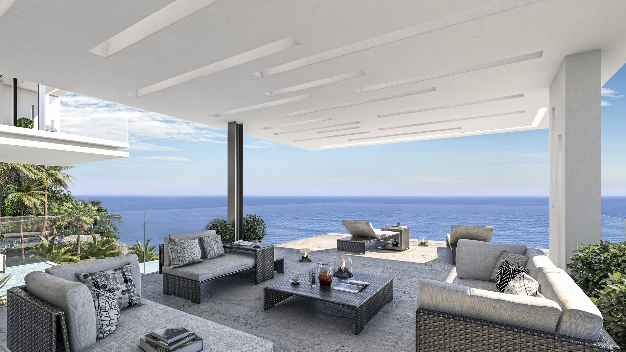 Répartie sur trois niveaux reliés par ascenseur et escaliers, elle dispose de 4 suites, d’un salon lumineux avec cuisine ouverte et d’une grande terrasse avec piscine à débordement de 70 m².