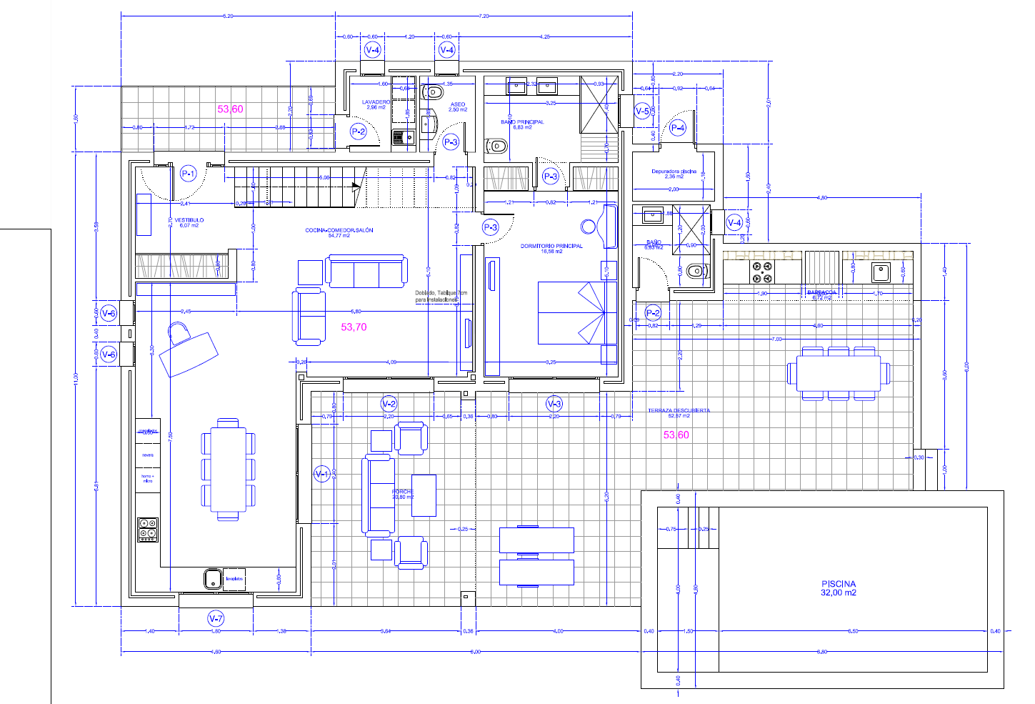 Elle comprend trois chambres en suite, de grands espaces ouverts et une cuisine entièrement équipée donnant sur la terrasse et la piscine privée.