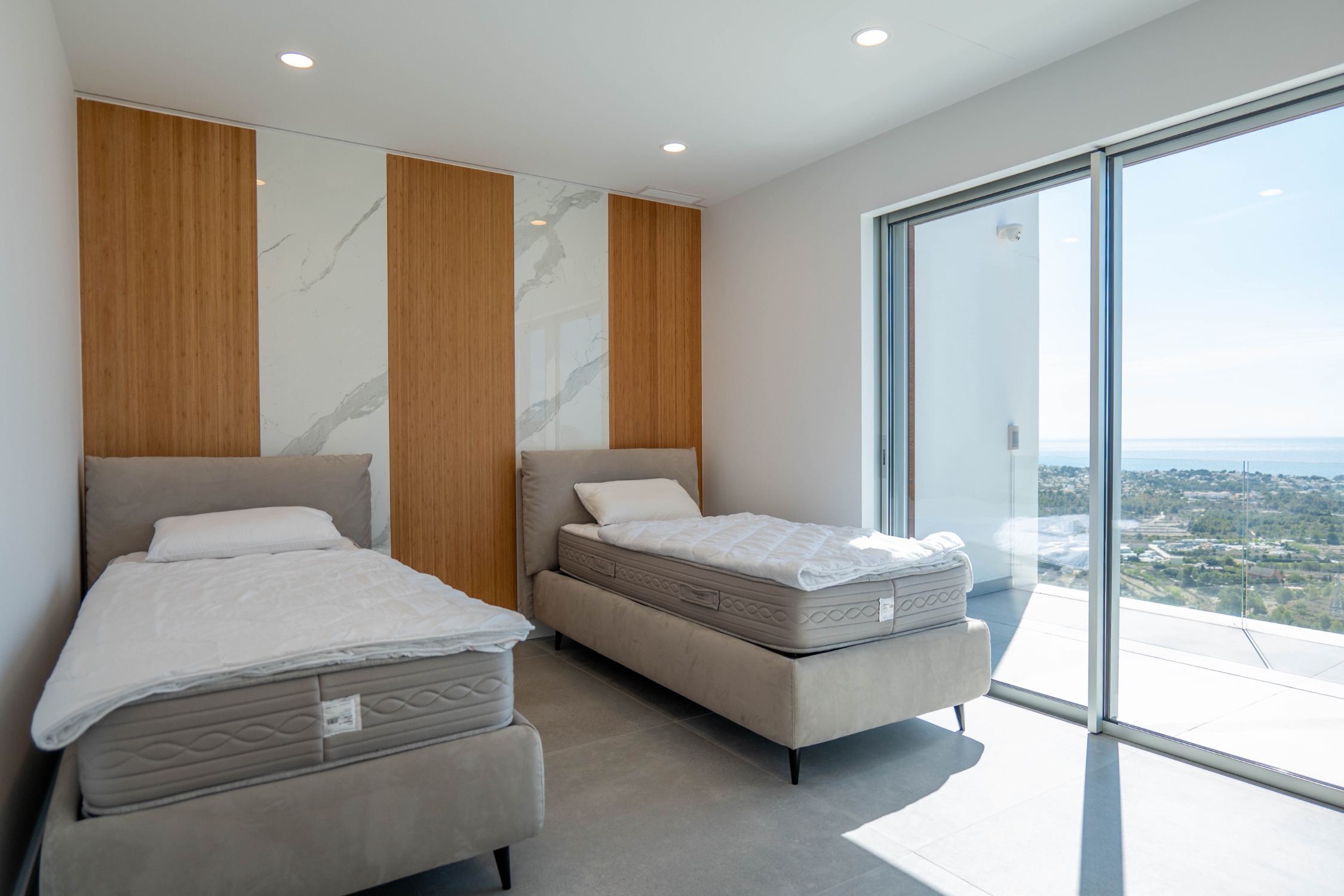 С панорамными видами на море и скалу Ифач, вилла предлагает 4 спальни, 6 ванных комнат и солнечные террасы.