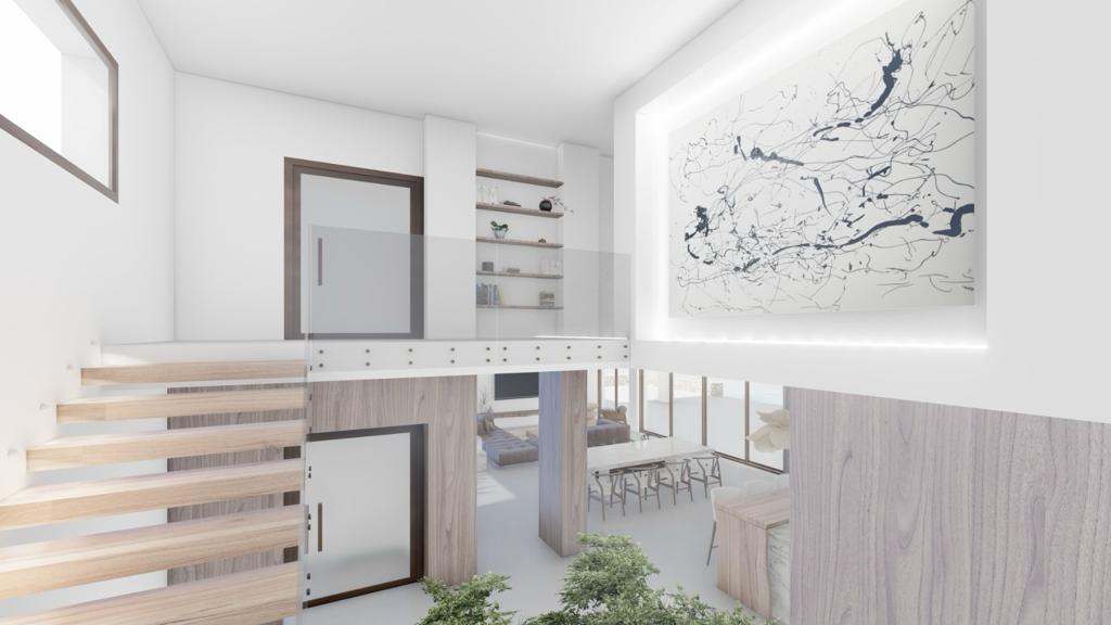 - Первый этаж состоит из прихожей, открытой кухни, гостиной, гостевого туалета и спальни с ванной комнатой и гардеробной. Снаружи пейзажный бассейн, крытая летняя кухня, крытая веранда, терраса и ванная комната.