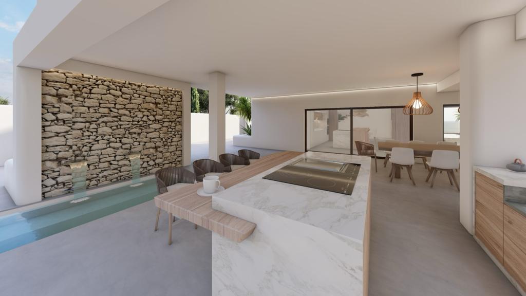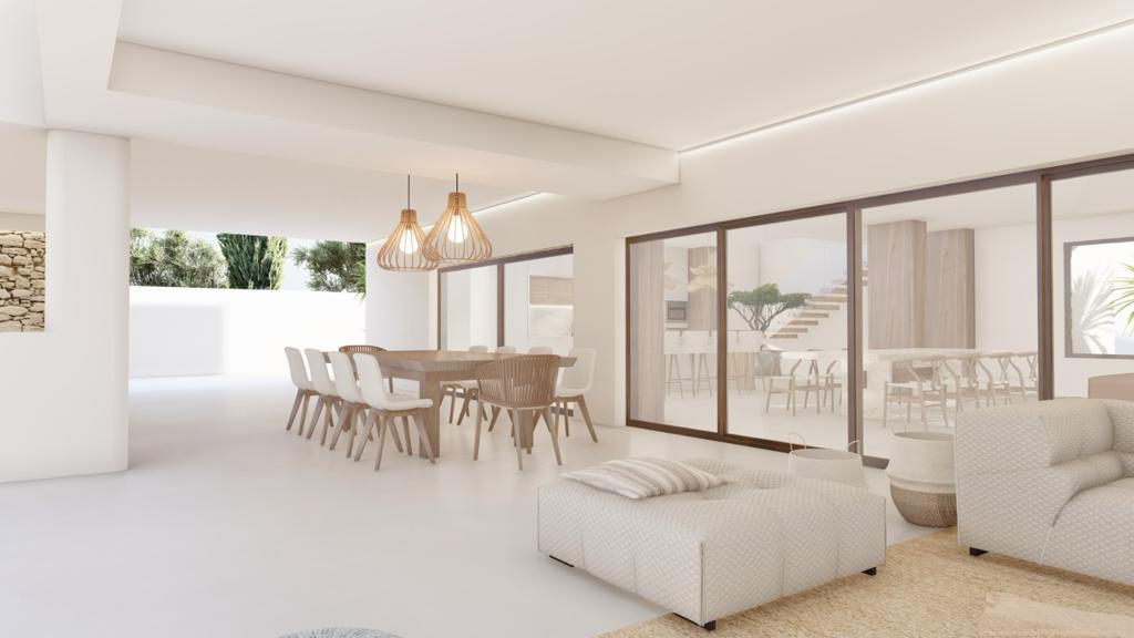 Строящаяся вилла в стиле Ибицы с панорамным видом на море, состоящая из трех этажей: